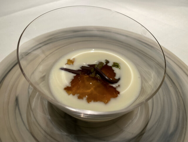 ヴィシソワーズ 稚鮎のリエット コンソメジュレ 蕨