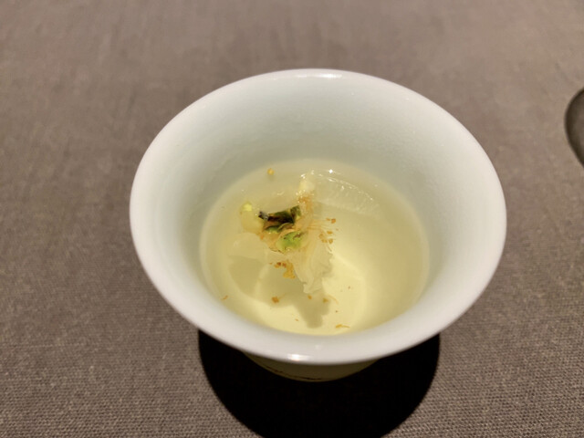 特にスープの美味しさに痺れました。香黒文字のお茶の香りがするスープ、雉雲呑湯の雉出汁スープ、〆の麺の清湯スープ、いずれも繊細でありながら芯の強さを感じる素晴らしいスープでした。