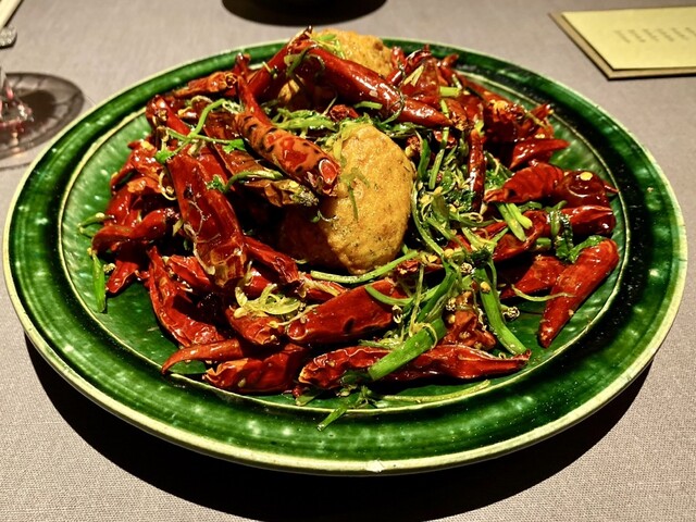 陰陽龍蝦①: オマール海老の唐辛子炒め