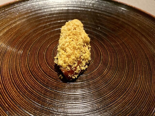 逆に、蒸し蟹は雄の白子と雌の内子が最初から混ぜられて出てきます。今まで雌雄別々に食べていて、「雌の内子もほくほくして美味しいけど、ねっとりした雄の白子の方が好きだなぁ」などと思っていたのですが、迂闊ながらそれを混ぜて食べるという発想はなかったです。新鮮でした。でも、欲を言えば、(1)雌の内子のほっこり感→(2)雄の白子のねっとり感→(3)両者を混ぜて食べる!といった3段活用が楽しめるとなお良かったです。