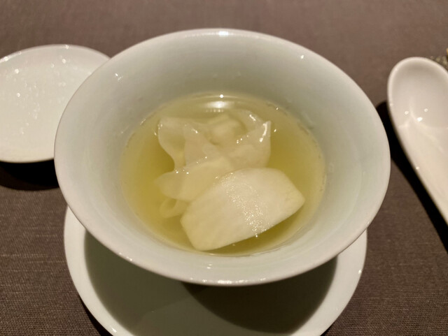 雉雲雲呑: 雉の雲呑スープ 百合根と朝鮮人参…いつもながら極上のスープ