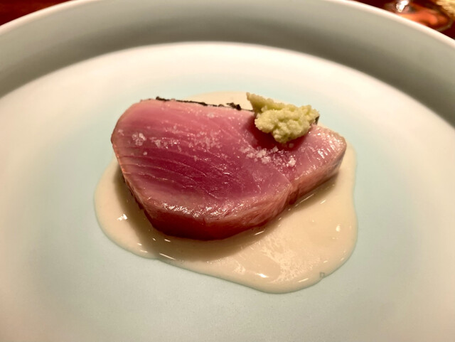 神経〆 めじ鮪の藁焼き お米と中国甘酒のヴィネグレットソース