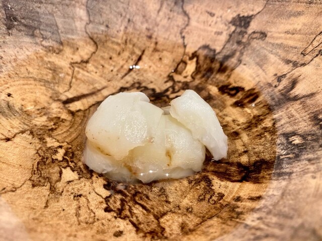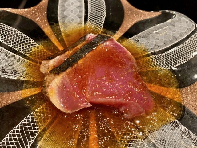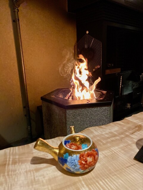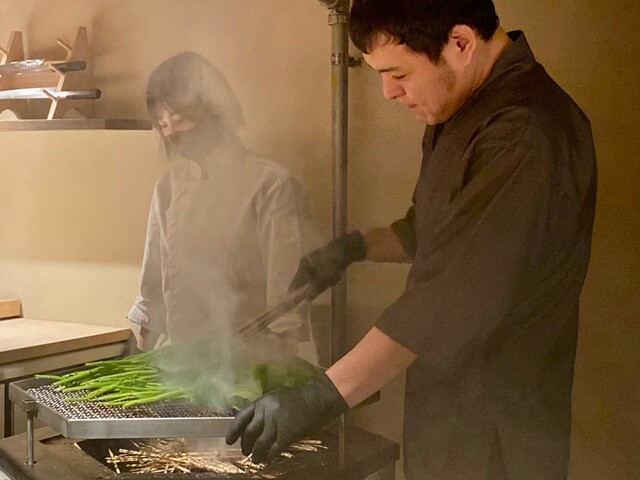 炭火だけではなく、薪、藁、竹、杉、桜、筍の皮、ウィスキー樽等々の炎で目の前で燻し、日本料理に多彩な燻香を纏わせた料理の数々はとても斬新でした。