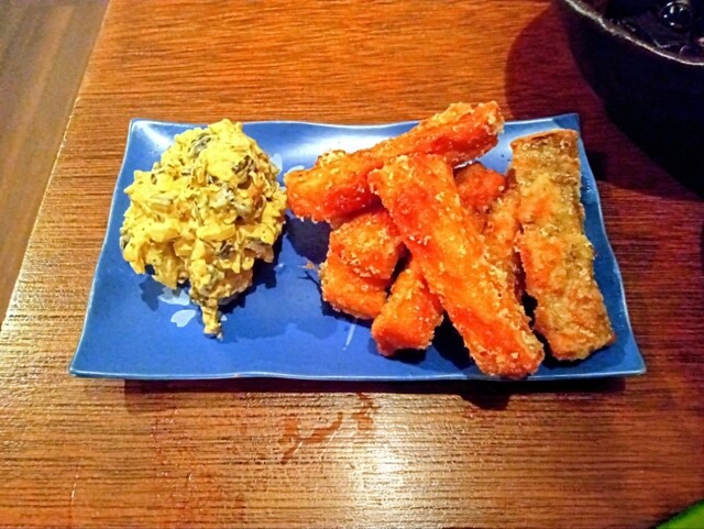 『ヤマタツ(和風タルタルソース添)』(600円)…これまたお聞きしたところ、山芋の竜田揚げのことでした(笑)