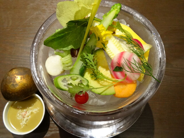 『バカール』の時の名物、バーニャカウダとカニ味噌ソースや自家製パンのブリオッシュなどはこちらでも健在!