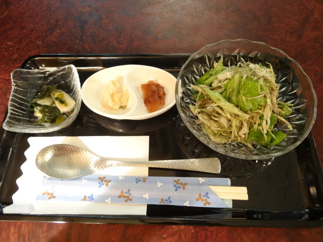 まずは、自家製ドレッシングがかかったサラダや小鉢が2品つきました。