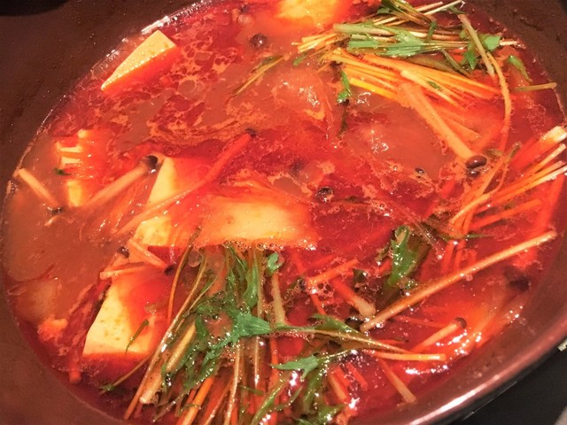 そして、ピリ辛な火鍋で野菜とお肉の旨みを存分に味わえました。