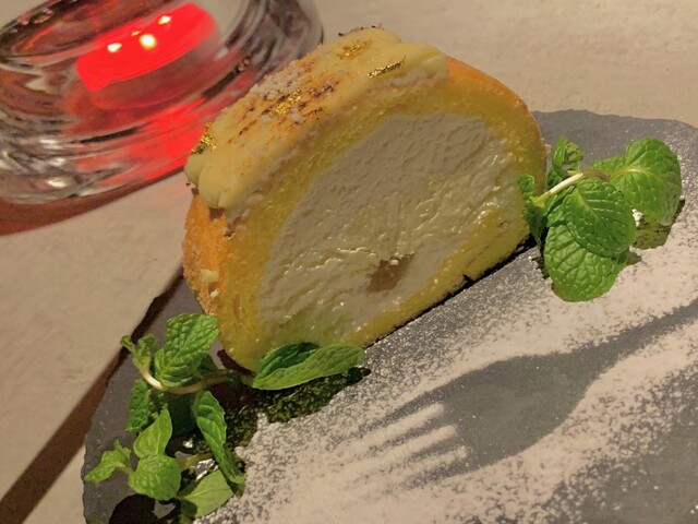 フロマージュブリュレロールは、ロールケーキにチーズのコクが絶妙でワインをまた頼みたくなりました!