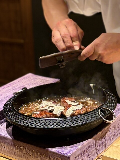 トリュフを削り入れた割下に、更にまたトリュフ!