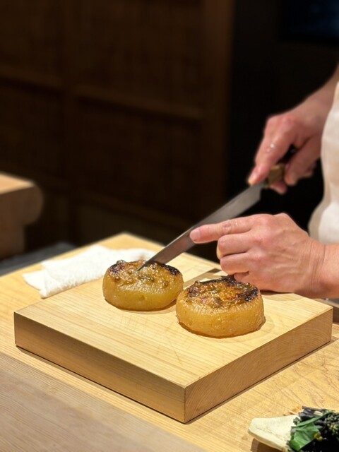 甘酒で一度炊いた大根は香ばしく甘い蕗味噌焼き。