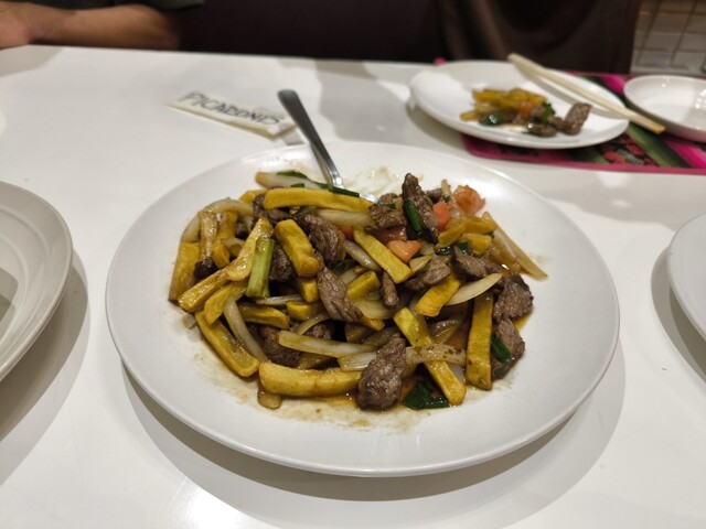 ロモサルタド(牛ヒレ肉と野菜とポテトフライ自家製醤油炒め)¥1600(2025年/9月)