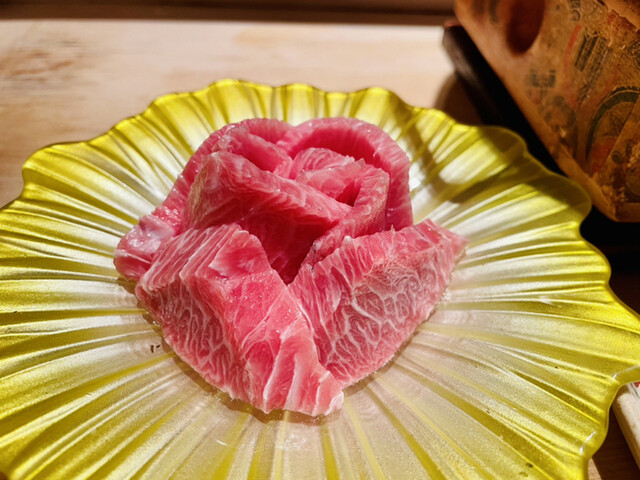開業以降10年間定番の逸品。炙ったまぐろに塩とわさびでこちらも抜群。