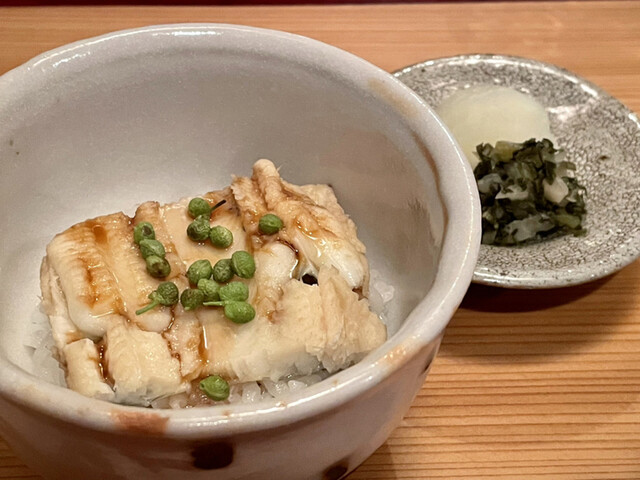 実山椒がたくさん乗った穴子ご飯。ふっくらボリュームたっぷりの満足感高い一品。