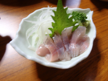 ・川魚のおつくり 新鮮だからこそできる、何の魚だったか忘れてしまいました。コリコリしててすごくおいしい!