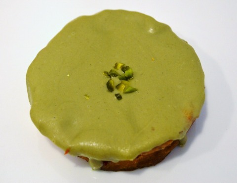 表面にピスタチオのチョコがコーティングされていて