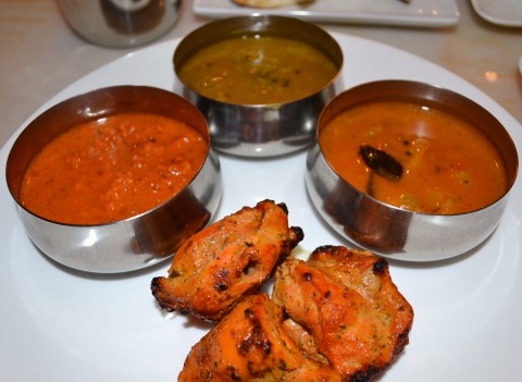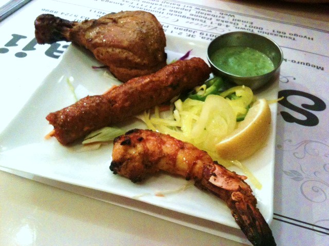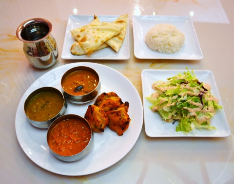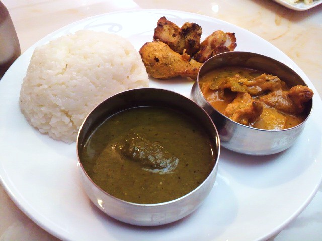 950円で3種のカレーとサラダとチキンとライスとナン