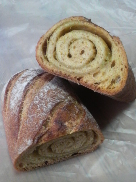かぼちゃのピューレ、三種類の自家製酵母を使ったパン。