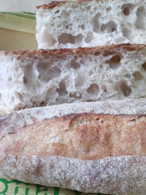 手にした感じやちぎった感じは柔らかく、食べやすくて優しいバゲットです。
