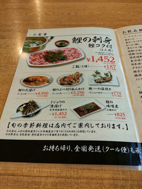 1200円『鯉の刺身(鯉コク付)写真は2人前』2015年12月吉日