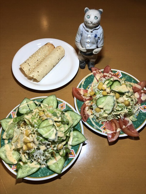チャナサラダとパパドのある風景