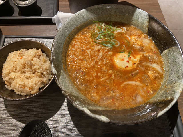 オーダーは肉かすうどん定食、ご飯は勿論かやくご飯