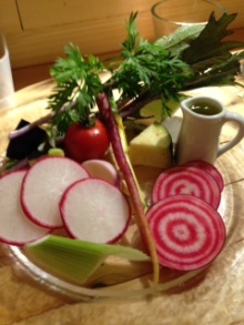 で、まずはオーナーイチオシの季節野菜のカルパッチョ