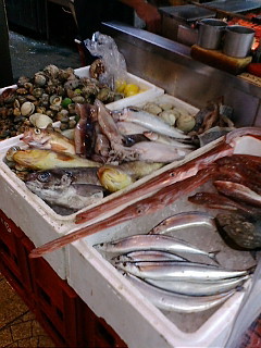 途中、イカ焼きのお店。壁一面にイカが・・・・