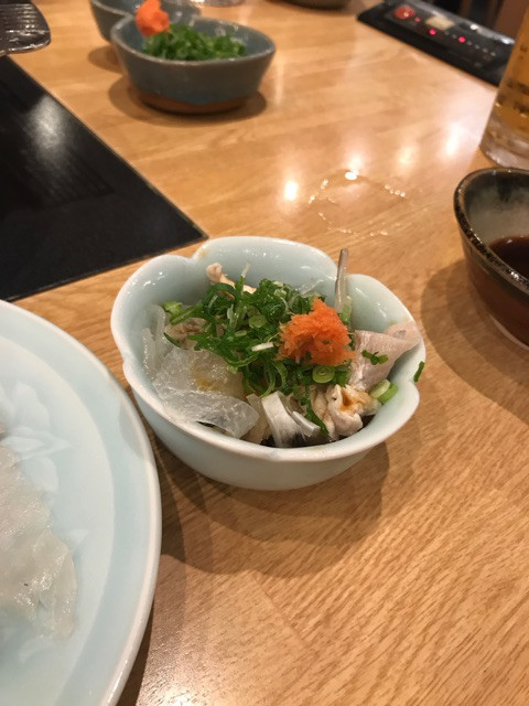 ちゃんとてっさだし、薄いんだけどほかでたべるぶつ切りよりもずっと身に反発感があってとにかくすごい。