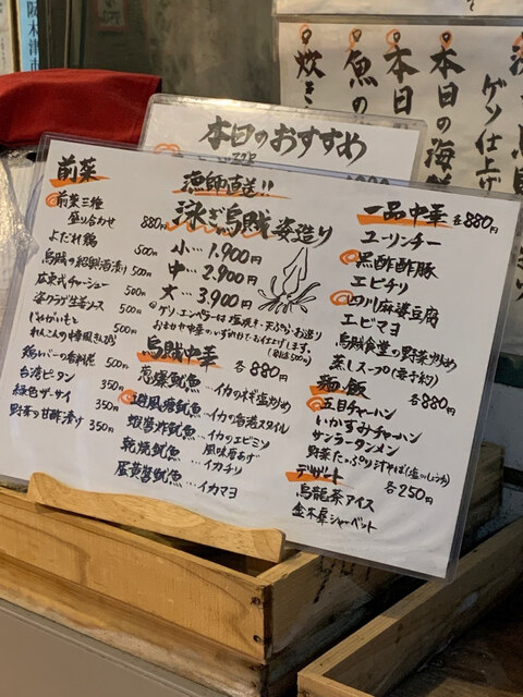 ここで泳ぎ烏賊と中華が食べれるらしい。