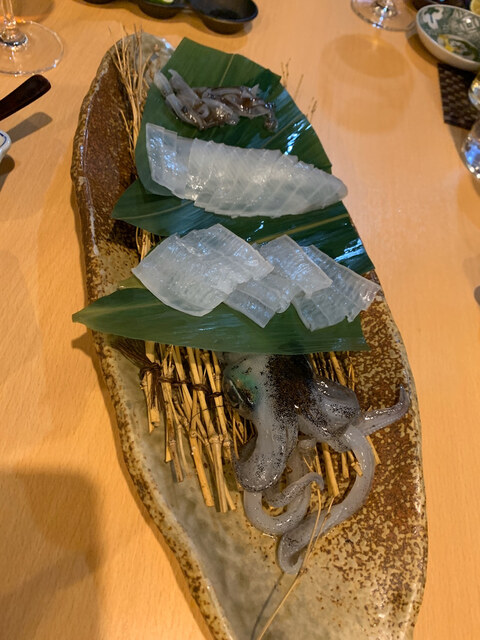 活けの烏賊は博多でよきう食べますが、ここはゲソそのまま食べれて烏賊の足の吸盤があんなに口の中や、上あごにくっつくとは知らなかった。