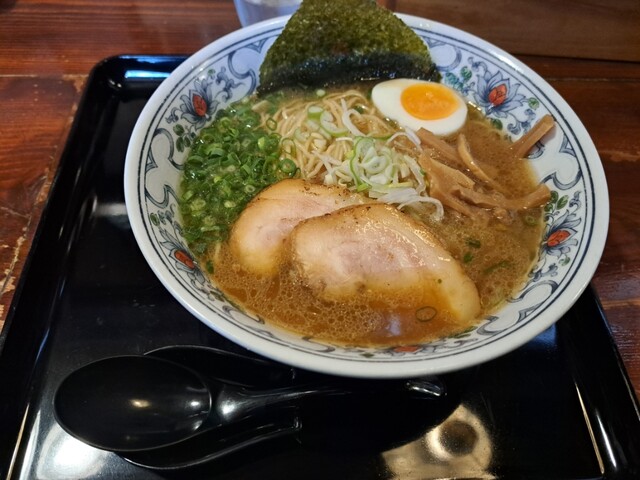 札幌への途中帯広辺りでお昼時になる様に走って来ましたがちょっと予定より時間が掛かり、池田町で高速を下ります。音更町でラーメン屋さんを食べログで検索。十勝川温泉辺りに音更町のラーメンランク1位のラーメン屋さんがありました。食べログの地図から地図アプリで「車での道順」を入れると開店ちょっと前に到着予定。早速車を走らせます。お店に到着したのは開店1分前。車が1台止まっていて2人乗っています。自分の車を見ると慌ててお店に向かいました。自分も駐車場に車を止めお店の前に。直ぐにもう1台車が来て2人降りて来ました。直ぐに開店。自分は入って右手のカウンター席に座りメニューを拝見。「特級豚そば」盛り付けが選べます。並盛りと中盛りは無料なので中盛りを。麺は太ちぢれ麺、細ちぢれ麺、平打ちぢれ麺。の中から選べます。道東育ちの自分は細ちぢれ麺を注文。トイレに行くとその向かい側に製麺室があります。待つこと10分ちょっとでラーメン着丼。見た目長ネギが2種類乗っています。先ずはスープを1口。旨い。こりゃー旨いわ。出汁も美味しいけどしょっぱく無くて丁度良い。麺は細ちぢれ麺。そんなにちぢれてはいないけど、固めで小麦の風味も美味しい。流石自家製麺。チャーシューは固そうに見えましたが、柔らかく脂身も美味しい。味玉も良い塩加減。好みだわ。いやー思いがけず美味しいラーメンが食べれました。入口に何か機械が有ると思ったら並んでる人の順番待ち用なんだ。帰る頃には満席で玄関に10人近く椅子に座ったり立ったりして行列になっていました。お店を出て車に向かう途中にもお客さんとすれ違いました。凄いな。タイミング良く食べれて良かった。ご馳走さまでした。又来ます。