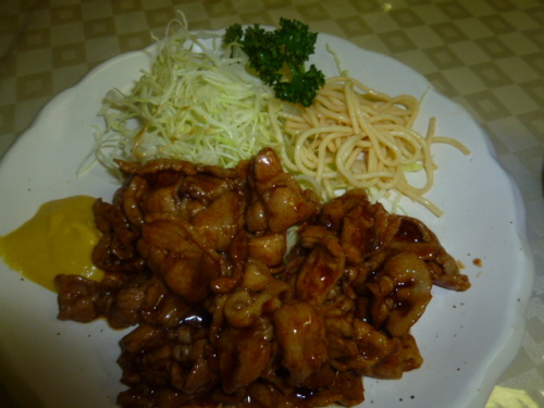 豚バラ肉を焼肉のタレで炒めたような食べ物だけど、ほんとにおいしいよ。