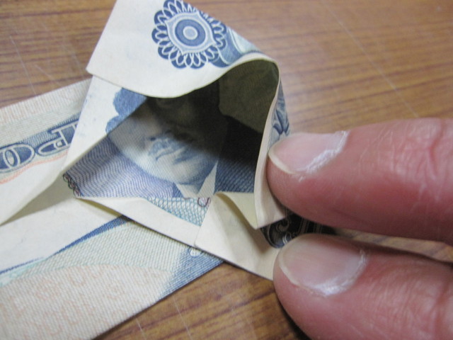 谷折りから、山折り・・ココが少し難しい