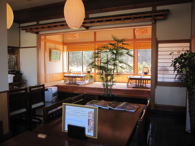 先客1名さんがカウンター席に・・オイラもお一人様でしたが、木漏れ日が注ぐ隅っこのテーブルへ。
