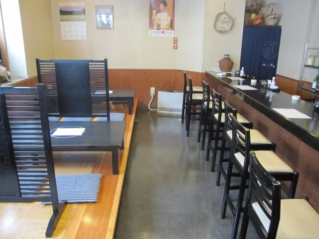 フロアにテーブル席、畳敷きの小上りには座卓が3卓・・・。