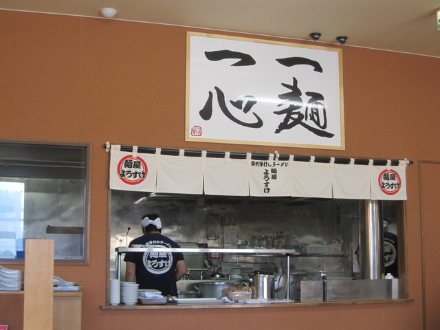 客席と厨房を隔てた壁の上部には・・・「田村屋系列店の証」、『一麺一心』
