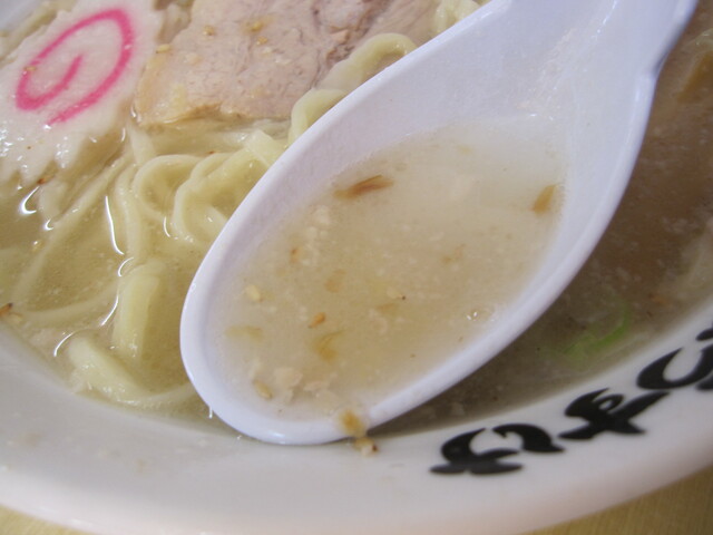 今日は、やや濃いめ感の琥珀色したスープでポツポツと脂玉が浮き、