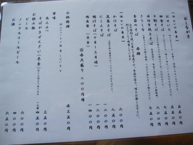 『 石臼手挽きそば (大盛り) ¥1.000 』