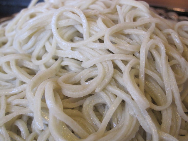 盛られた蕎麦は“切りべら23本”、肉眼で見ますと綺麗な鶯色・・まさに「新そば」。