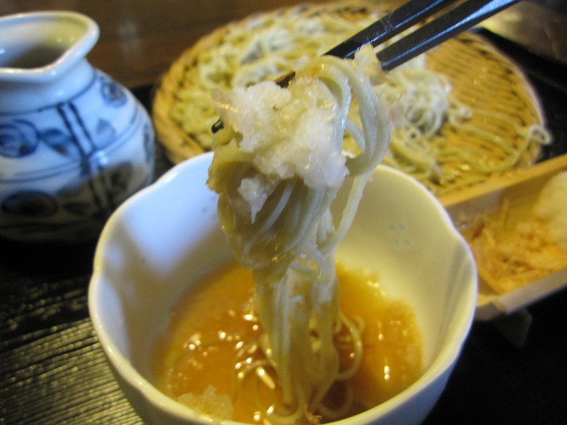 1口目はシンプルに蕎麦を手繰り、ホンの先っちょに浸けて・・。
