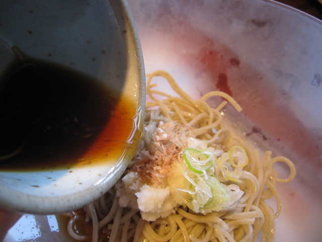 蕎麦の上に「辛味大根」と「花かつお」を乗せ、汁を注いで・・・ズ、ズル~っと。