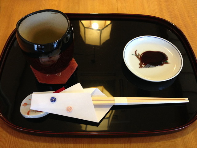こんな感じでお店を出ました。お土産に今年の干支にあたる蛇の箸置きを頂きました。