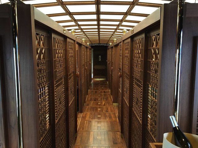 2号車:個室仕様で、ダークブラウンのウォールナットの組子