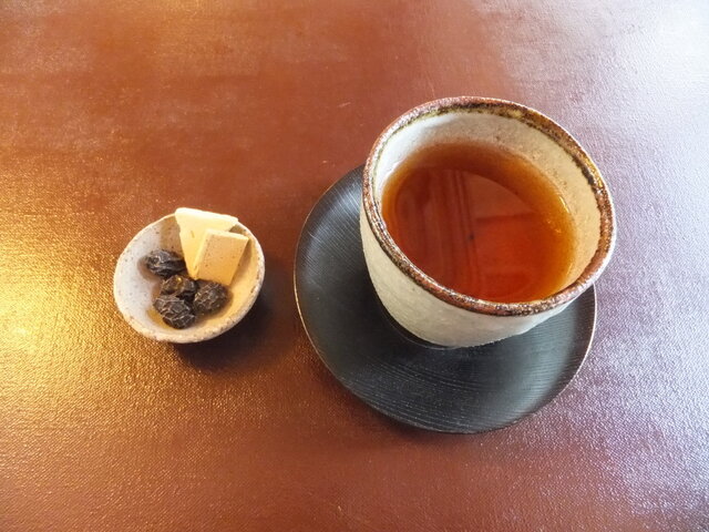まずはお茶を頂きました。※前回同様しぼり豆がウマ過ぎて感動。