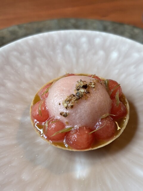 薄い生地 冷たいスイカ もみの新芽の砂糖漬け