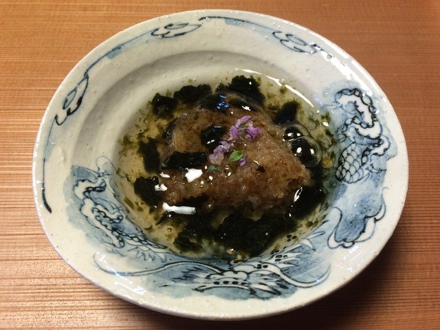 お造り(昆布醤油の煮こごりと山葵)醤油・ポン酢・塩で