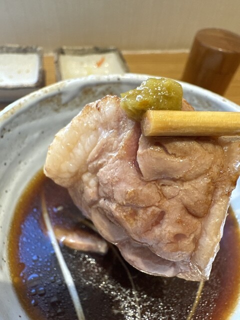 店内に入りざるそばを頼みかけて温かいものを食べたくかけそばを注文。更科堀井を彷彿とさせる細い緑色がかったおおそばでとても風味があっておいしかったのでのびる前にいただきました。ニ八そばぽい食感でしたが粘りのあるおいしいそばでした。かけつゆは一番だしの上品な感じにゆずを香らせていてとてもよかったです。