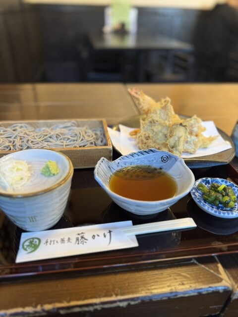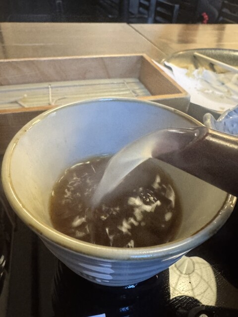 天ぷらは油の香り控えめで、大海老と野菜そのものはしっかりと火が通り、てんつゆの控えめな塩味とよく合っていました。今回はざるだったので、蕎麦湯もおいしくいただきました。香り高い蕎麦茶がうまいお店で、お土産に蕎麦茶も買って帰ってきました。