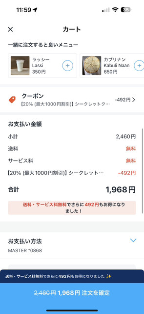 合計1968円 PayPay決済