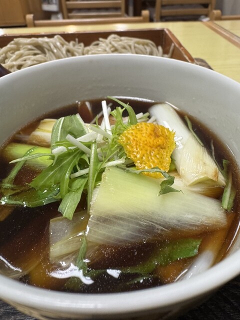 待つこと10分程度。振る舞われたお膳が届いた時に薫る削り節の香りに圧倒されました。そばは田舎蕎麦にしましたが蕎麦と柚子皮の芳醇な香りが麺を噛み締めるたびに広がります。鴨も全く臭みなく脂身の甘みが濃厚でした。今まで食べた鴨南蛮の中では指折りの美味しさでした。蕎麦と鴨の旨みを噛み締めながら素材そのものの甘みを感じるネギをいただいていたらあっという間に食べ終わってしまいました。名残惜しく蕎麦湯を蕎麦つゆにかけて最後の一滴まで美味しくいただきました。